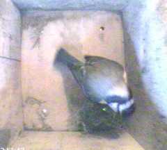In spite of some beautiful weather - warm and sunny for the time of year, our birds still seem to be playing at it. However today, there were definite signs in Box1, that this may be changing. More moss is being brought into the box!