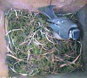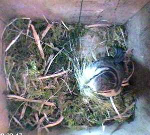 It is 9.04am and this is Neptune's third or fourth visit to the nest box since we started recording this morning at about a quarter past eight - so he is still paying close attention to Fantail's nest building progress (or lack of it.)