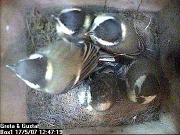 It's always the same. After a chick has left the nest the remaining chicks often look frightened and run for the security of the nest cup