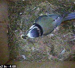 Ten minutes later Mum is back to see if there are any more chicks to look after in the nest box. Of course she just has to clean out the last dropping before she goes!