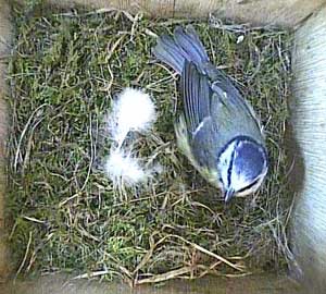 It looks as though Spikey thinks the nest is nearly finished. Feathers are normally only brought to the nest box in order to provide a comfortable base for the eggs to hatch out on.