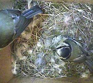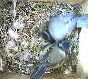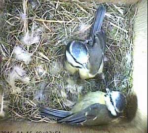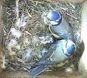 We start this sequence with a bluetit in Box2 with a feather in its beak. But which female is it?
