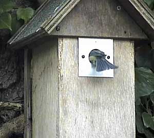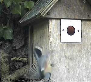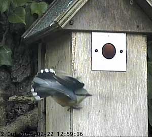 Of course, the nuthatch cannot see this, but inside the box, the bluetit is displaying like fury!