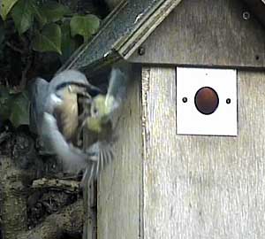 The rather battered looking bluetit spent a short while recovering on the entrance hole before he, too, left for other things.