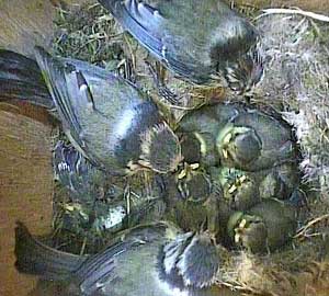 Finally, one of the chick obligingly shows off his wings for us. What a change has taken place over the last few days - and all on a diet of caterpillars!