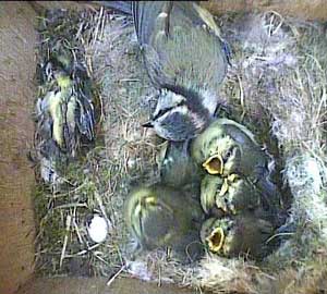 ... ending up out of the box herself, but with most of the chick still inside. Fortunately she does not let go ...