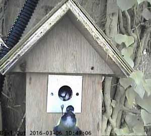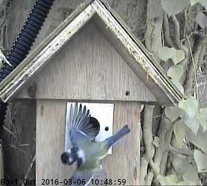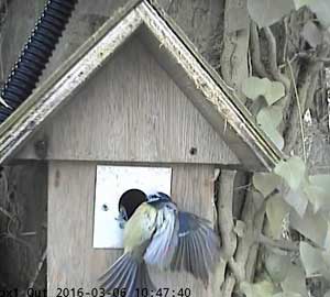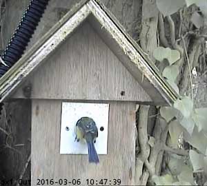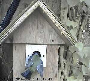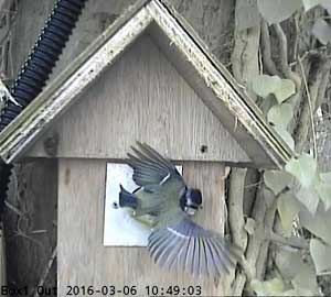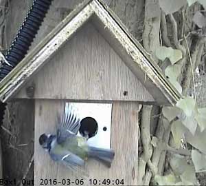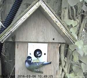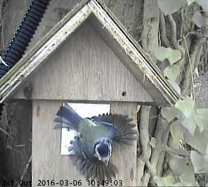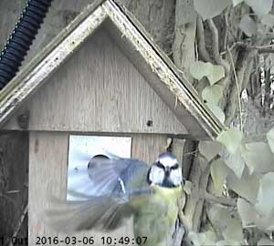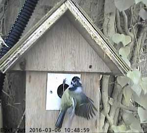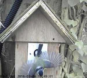 The bird inside immediately came to the hole itself and this caused the newcomer to retreat a little.