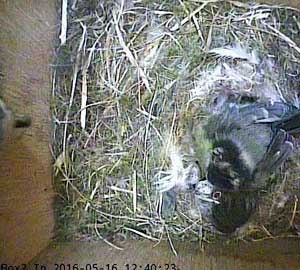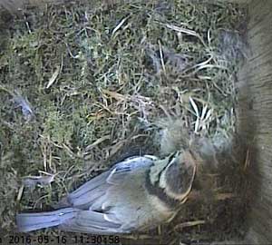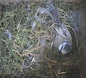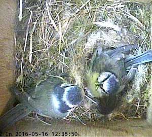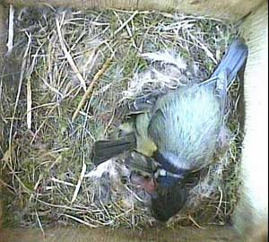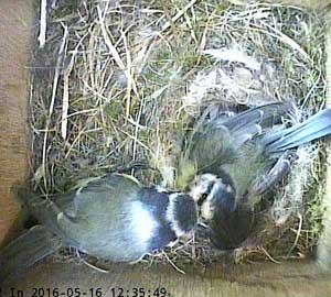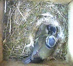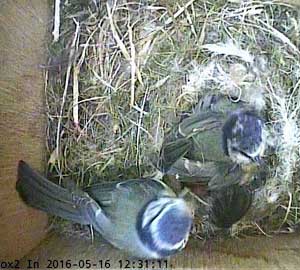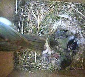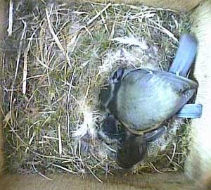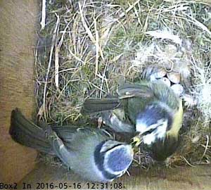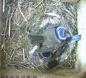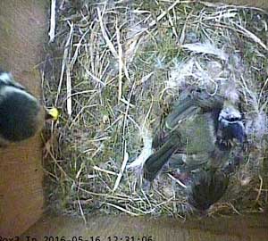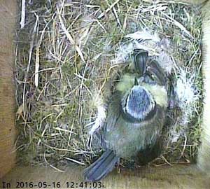 Here she is about to enter the box again with something small in her beak.