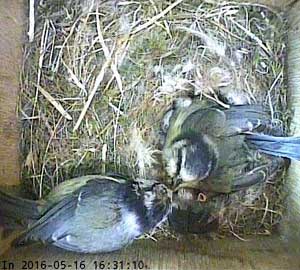 Bess kept going out for food and apparently quite happily passed it to Spikey to feed to the chicks.
