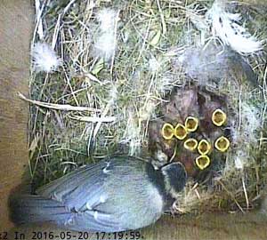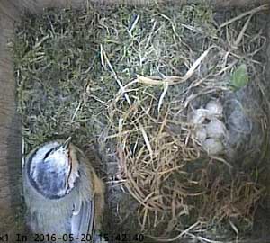 This means that the first egg must have been laid in the early hours of Monday 16th May when she hadn't even finished the nest! It is only because she is starting to incubate them that they eggs become visible when she gets off the nest.