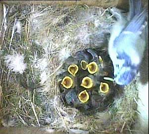 You can see a few of the unhatched eggs here - but certainly not 10 of them! As the eggs cannot be removed by the parent bluetits, the missing eggs must have hatched and the chicks subsequently died and their bodies removed. I can think of no other explanation.
