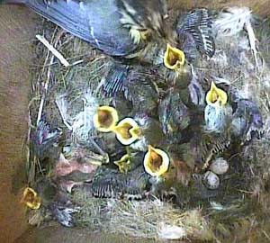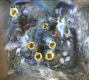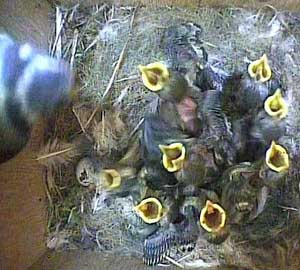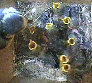 The reception a parent faces when bring food to the nest box is getting pretty fierce!