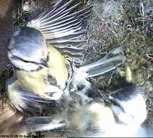 There was a brief fight in Box3, but the right bluetit seems to have won as she is still laying eggs in the nest box!