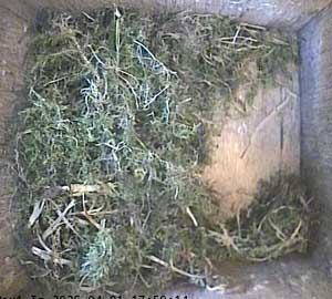 This is the first piece of fluffy stuff she has collected. She will need lots more to line the nest cup.