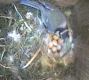 My Collins Field Guide says bluetits normally lay between 7 and 12 eggs, sometimes from 5 to 16! As you can see from the Overview, I've never had any bluetit laying more than 12 eggs, and that has happened only once in 2009. I consider 10 to be a large clutch! The clutch sizes reported above this are always the result of two hens laying in the same nest, sometimes co-operatively and sometimes as a result of a second hen ousting one which has already started laying.