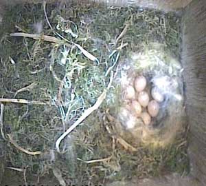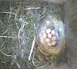 I'm not sure I can even see 8 eggs here. There is certainly no sign of a ninth! I think Meg has probably finished her egg laying efforts.