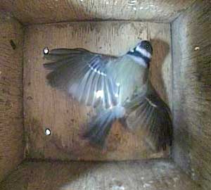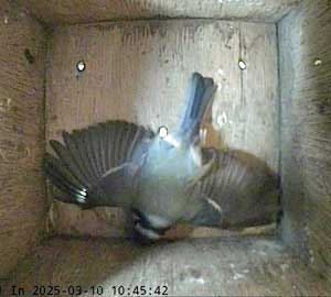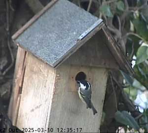 We have still had practically no birds entering Box2. However, here is a coal tit having a look. He didn't go in the box, but this is the box that was used by the coal tit pair last year. So this could be the male or one of his chicks.