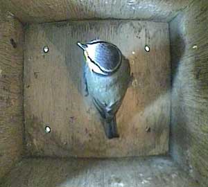 This visitor is less welcome! Bumble bees often come inside the nest boxes at this time of year as I suppose they are queens look for a place to make a nest.