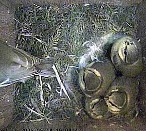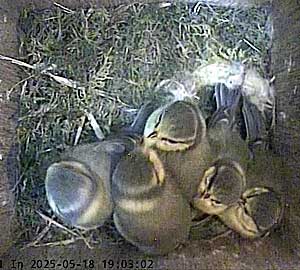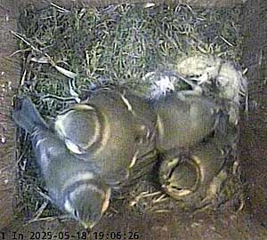 It's an hour since the last chick fledged, and there is no sign that any of these will leave the nest soon.
