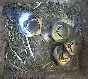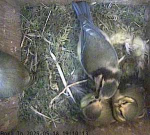 Max is still coming with food. I suppose Meg has her beak full looking after the chicks that have now fledged.