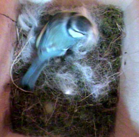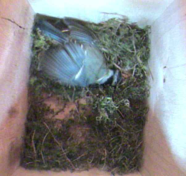 The mystery of the birds′ sex deepens. Just now a bird flew into the box. After a few moments, it started doing its nesting wriggle routine, only to be interrupted by the other bird coming into the box. The first bird promptly left leaving the newcomer in possession, whereupon this bird promptly started doing nesting wriggles! Do we have two females competing for the box or do both sexes perform this routine? If we have two females competing, where are their male companions? Or are our preconceptions about the roles of the two sexes mistaken?