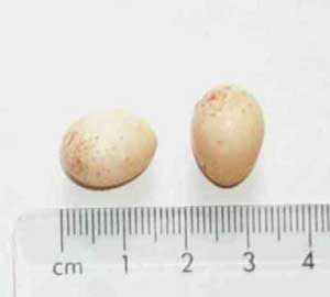 Here is a photo of the two eggs - it really is amazing to see how tiny they are. They are about 1.5cm long and 1cm wide. The depth of the nest material at the back is about 7cm, at the front where it has been trampled down it is about 4cm and the bottom of the nest cup has only about 1cm of "bedding". Next year we shall put some measuring marks on one of the walls in order to enable us to estimate these things without waiting for the chicks to fledge.
