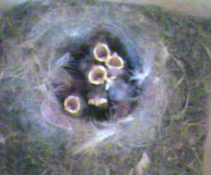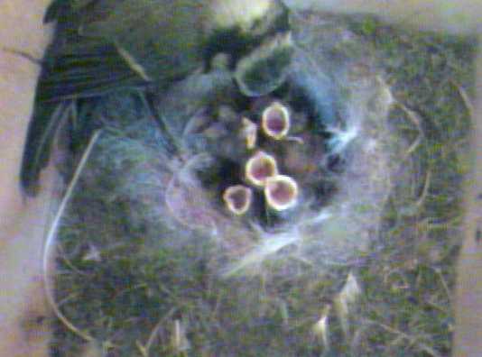 The chicks are growing rapidly, and the hen is spending less time in "processing" a mealworm when she collects one from the feeder. The cock still is not using this useful larder, although the great tit is still managing to sneak in there when the hen is not aware of his presence.