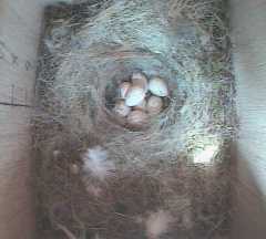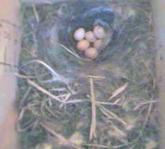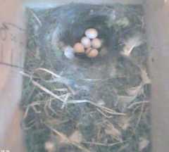 Five eggs now in Box2, though one is partially hidden by the latest one. Bird1 is still keeping
