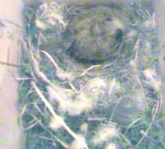 Box1's nest now looks completed and is 6cm deep at the edges. Compared with the nest in Box2, it looks rather a mess, with a fair amount of straw-like material in it. More about that later.