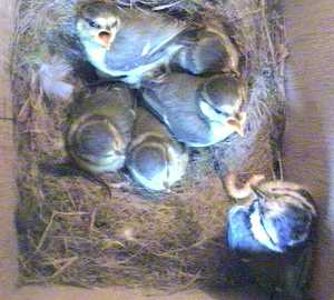 This year both boxes have had a very irregular pattern of egg laying and hatching. The amazing thing is that the chicks fledge so close together in time.