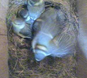 This morning, I took the ladder and looked inside Box1 where Beauty and Beau had raised their brood. I was trying to settle the question of whether or not all eight of Beauty's eggs hatched.