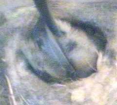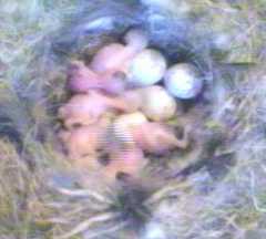 Well, Scrap, the last of Battler's chicks to hatch, survived the night and can clearly be seen on the image on the left. He is the tiny pink blob at the top of the nest and appears half the size of the two chicks just below him.