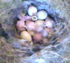 As a teaser at the end of the day, Beauty (in Box1) has given us a poser. Does this image, taken only a second after the preceding one, show eight chicks? Click the image for a bigger version.