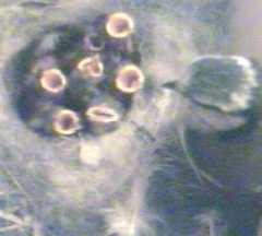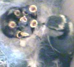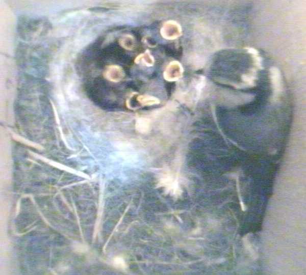 The male bluetits never deign to get their beaks dirty by helping with the cleaning, although they do do their share of the equivalent of nappy changing.