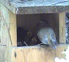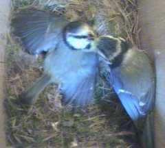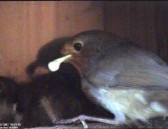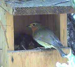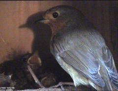 Both our bluetits continued sitting yesterday with nothing of note to report. Not that they were getting much of a look in, as the day was one of frantic activity with our robins. We knew the chicks were due to fly today and we were desperately trying to get some decent pictures of them before they did.
