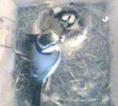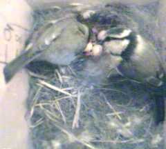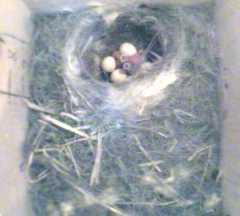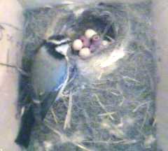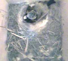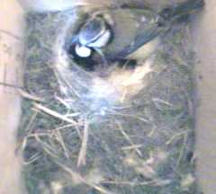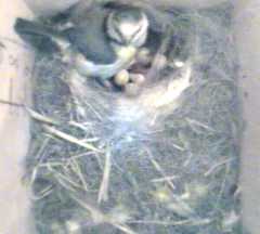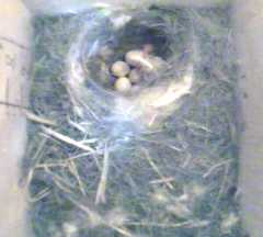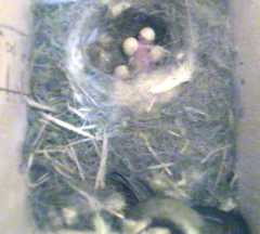 At about 5.20 this afternoon, Elizabeth looked at Box1 - and found Beauty eating some egg shell!! She nibbled away at it, and pulled at a stretchy bit (the membrane?), before settling down again.