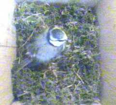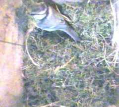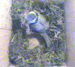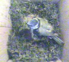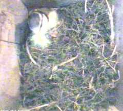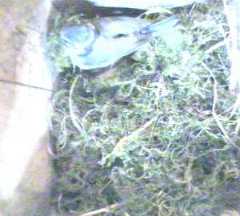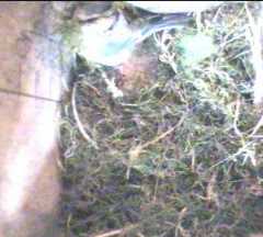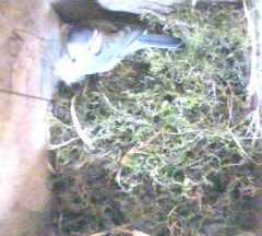To start with, we have some pictures of Fantail continuing to build in Box1. She was coming in and out all day, carrying mainly moss but sometimes some wool. We only show a small selection of her trips here.
