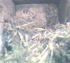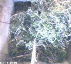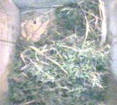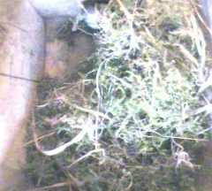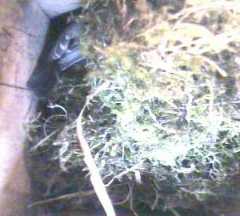 She is under the moss at the top of the first picture - and then trying to get out of the box with the piece of hay in the second.