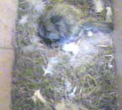 Elizabeth switched on the cameras at about twenty past seven this morning. There was no sign of Fantail but Fluffy was behaving as Fantail did yesterday. She was moving rhythmically (enough to trigger numerous photos), her beak kept opening and closing, and she could be seen blinking quite rapidly. After several minutes minutes panting she started moving restlessly and appeared interested in something beneath her.