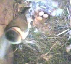 Fantail leaves the eggs uncovered for a change. Then Fred comes to admire them.