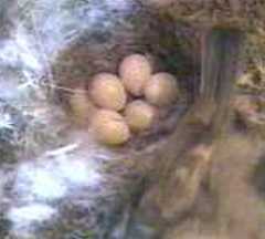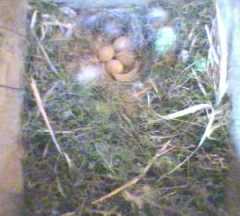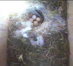 So how many eggs has Fantail got? At least there can be no doubt about Fluffy's clutch. (These pictures have been enlarged a bit to make the egg count easier!) Seeing that Fantail started laying a day before Fluffy, the pictures below are a little surprising.