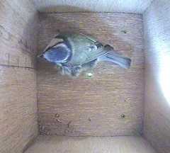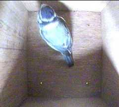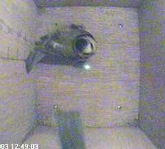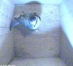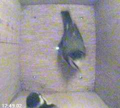 These two pictures show another bird in Box2 when Fluffy appears at the entrance hole.
