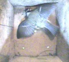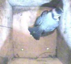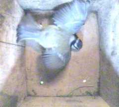 The third shows one bird by itself in the box. All three pictures were taken within one second - they don't hang about do they!
