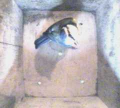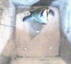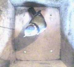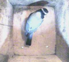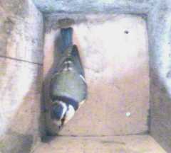 After several days of rain, today is relatively bright and sunny and as a result the whole garden is alive with birds. The nest box at the back (our first box) has been visited a couple of times and this time I managed to take a few pictures - with the light on!
