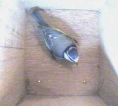 Today we switched our monitoring to the box in the front garden to see whether the local birds were taking any notice of it. The good news is that the answer is 'Yes', but the bad news is that the sun, being low at this time of year, is making it difficult to get good pictures.