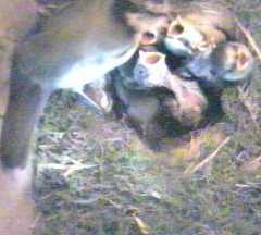 On the right Scrawny and Scrap shout for their breakfast - well mid-morning snack anyway.