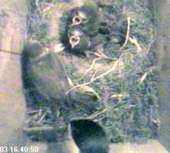 Fortunately, the chick turned and ran for the nest cup. Although the woodpecker leaned forward, by this time the chick was out of range and so lived to tell the tale another day.