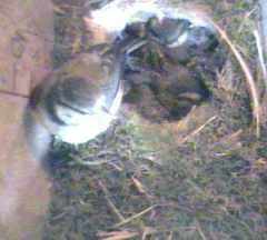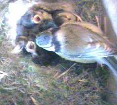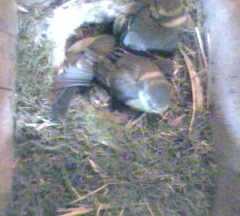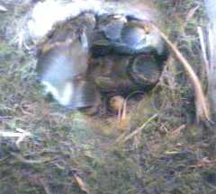Fantail is in the nest. The two birds on the side are chicks! Three minutes later the woodpecker arrives. Immediately Fantail covers the chicks, flaps her wings furiously and utters warning cries. The next image is a bit clearer!