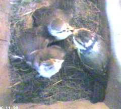 Scrawny (who no longer looks in the least bit scrawny!) flies up to have a look out.