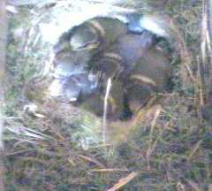 Woodie woodpecker pays another visit. All huddle down except Scrap who still has his mind on his stomach.